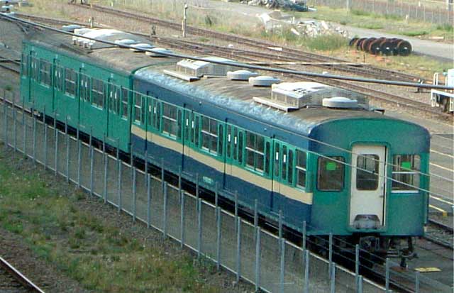 マスキングなどをした形跡も無く適当に塗られていますが、 以前より解体待ちの車輌が真緑に塗られたりといったこともあった様で今回も塗装装置の実験などと思われます。
